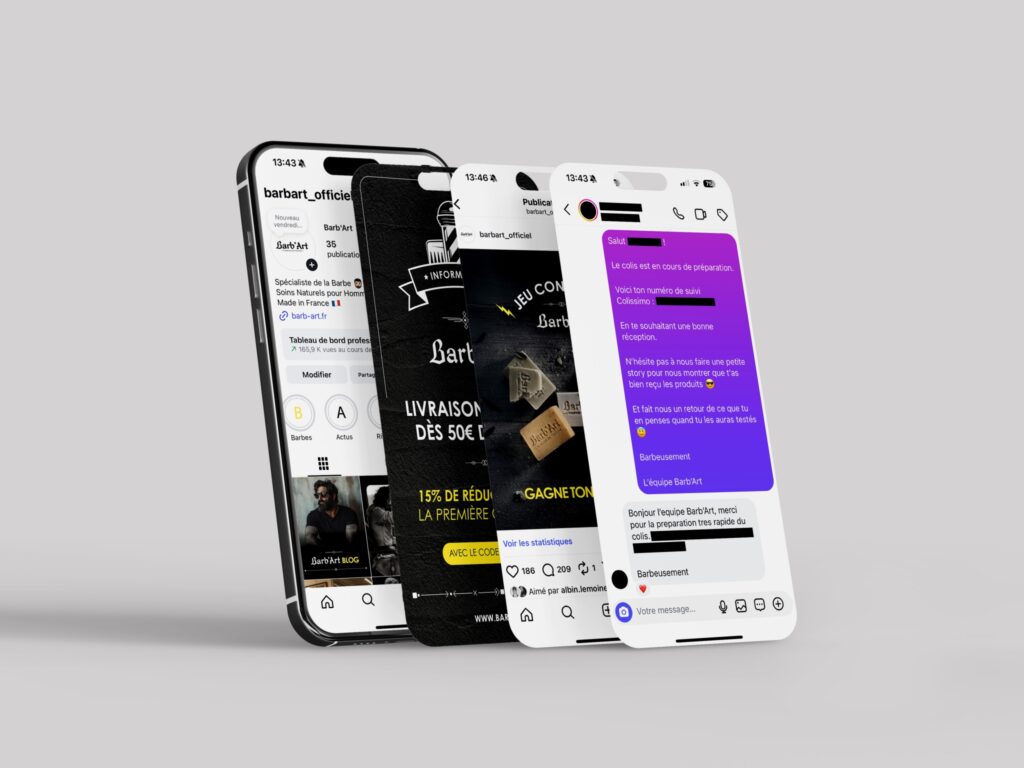 Accompagnement de Barb’Art dans la gestion de ses réseaux sociaux : création de contenus visuels harmonisés, animation de la communauté et mise en avant des produits pour renforcer la notoriété et l’engagement de la marque.