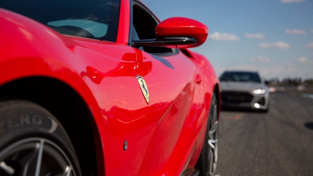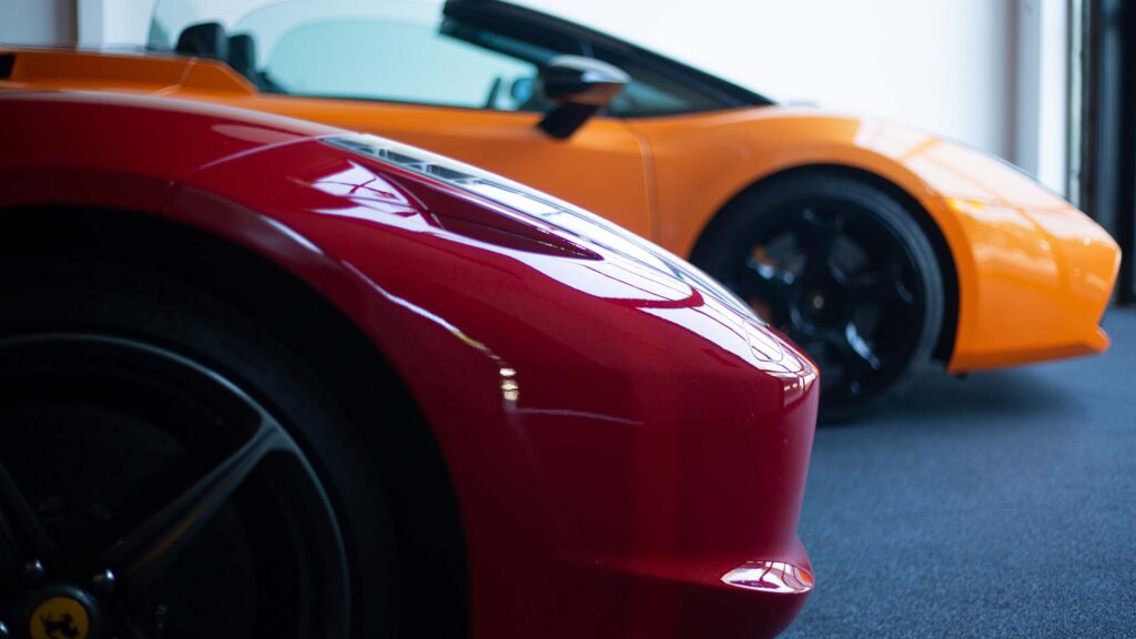 Destiné à une diffusion sur le site internet mais aussi sur les réseaux sociaux, nous alternons les prises de vues aériennes, les détails sur les finitions des voitures et les plans larges afin d’avoir des rendus photographiques artistiques et dynamiques. La post production permet également de réaliser un travail sur la colorimétrie afin de se rapprocher au plus près de la réalité et du rouge emblématique de Ferrari !