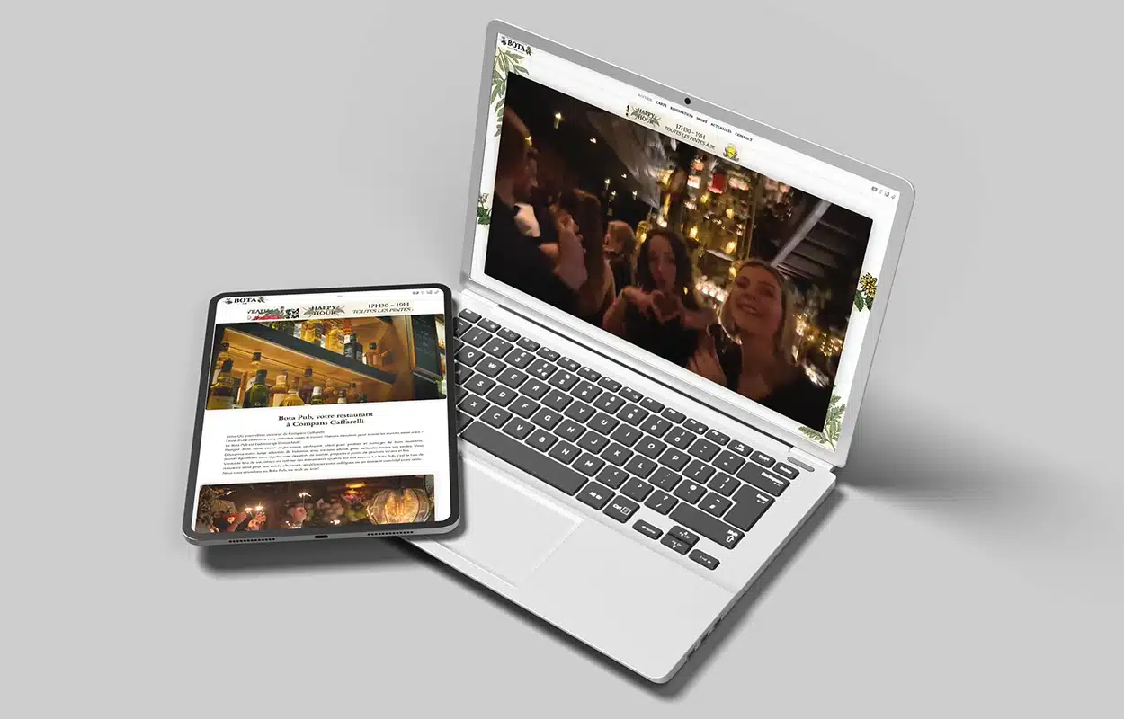 Pour le Bota Pub, implanté à Toulouse (Compans-Caffarelli), nous avons créé un site vitrine reflétant son atmosphère cosy, verdoyante et festive. Le design reprend les codes d’un pub anglo-saxon moderne : bois chaleureux, murs végétalisés, et plaisir visuel dès la première page, avec une navigation intuitive pensée pour mobile.