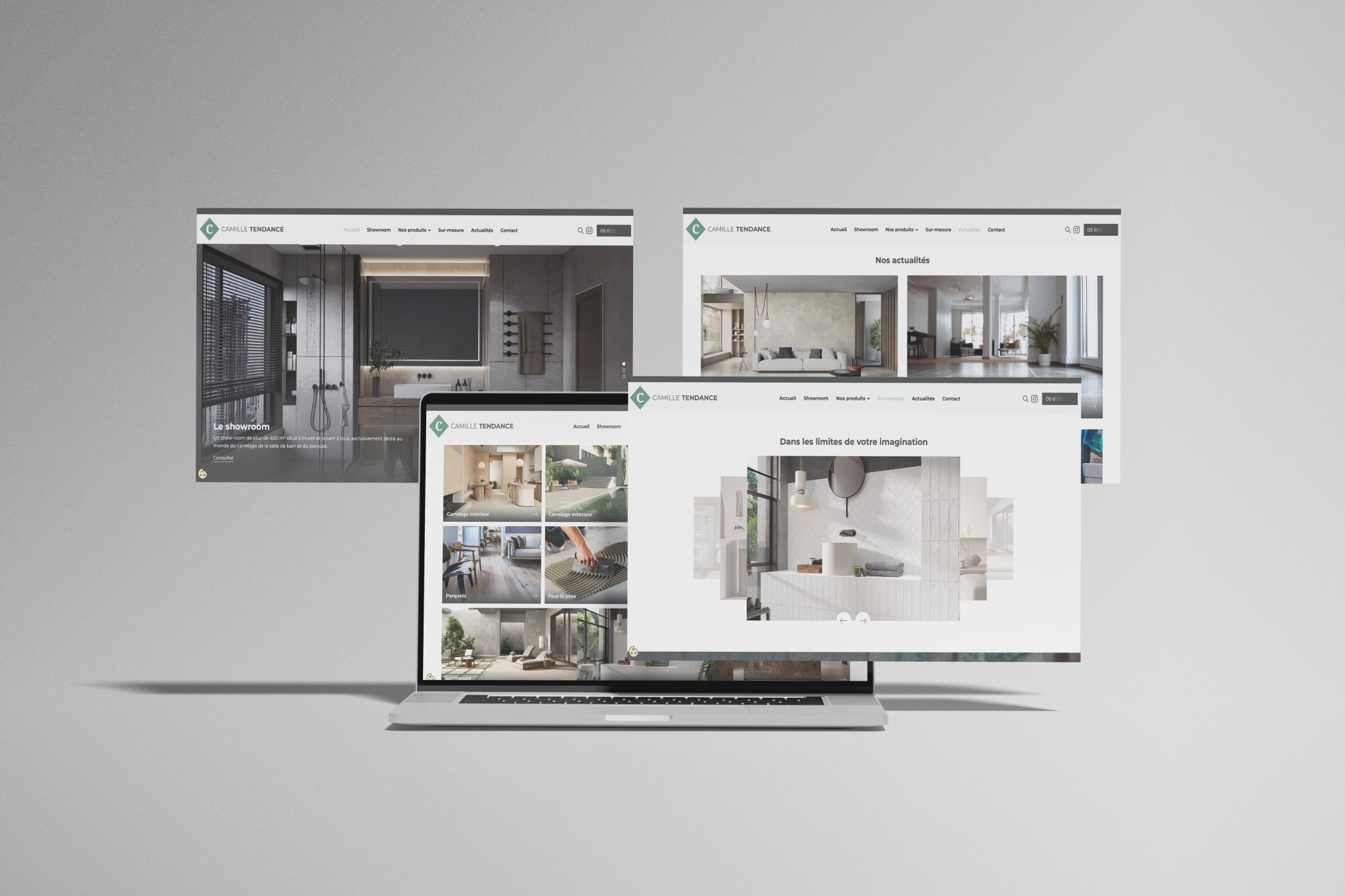 L’agence NRV a accompagné Camille Tendance, enseigne spécialisée dans la vente de carrelage, parquet et salle de bain, dans la création de son nouveau site vitrine. L’objectif : affirmer l’identité visuelle de la marque, valoriser la qualité de ses produits et offrir une expérience utilisateur fluide et inspirante, à l’image de son univers décoratif. Le site met en avant les différents univers de Camille Tendance, carrelage, salle de bain, revêtements, mobilier et décoration à travers un design épuré et contemporain. Une attention particulière a été portée à la mise en valeur visuelle des produits, avec des photos grand format et une présentation claire des gammes. La structure du site a été pensée pour faciliter la navigation, optimiser le référencement naturel et encourager la prise de contact, tout en traduisant le savoir-faire et la créativité de la marque.